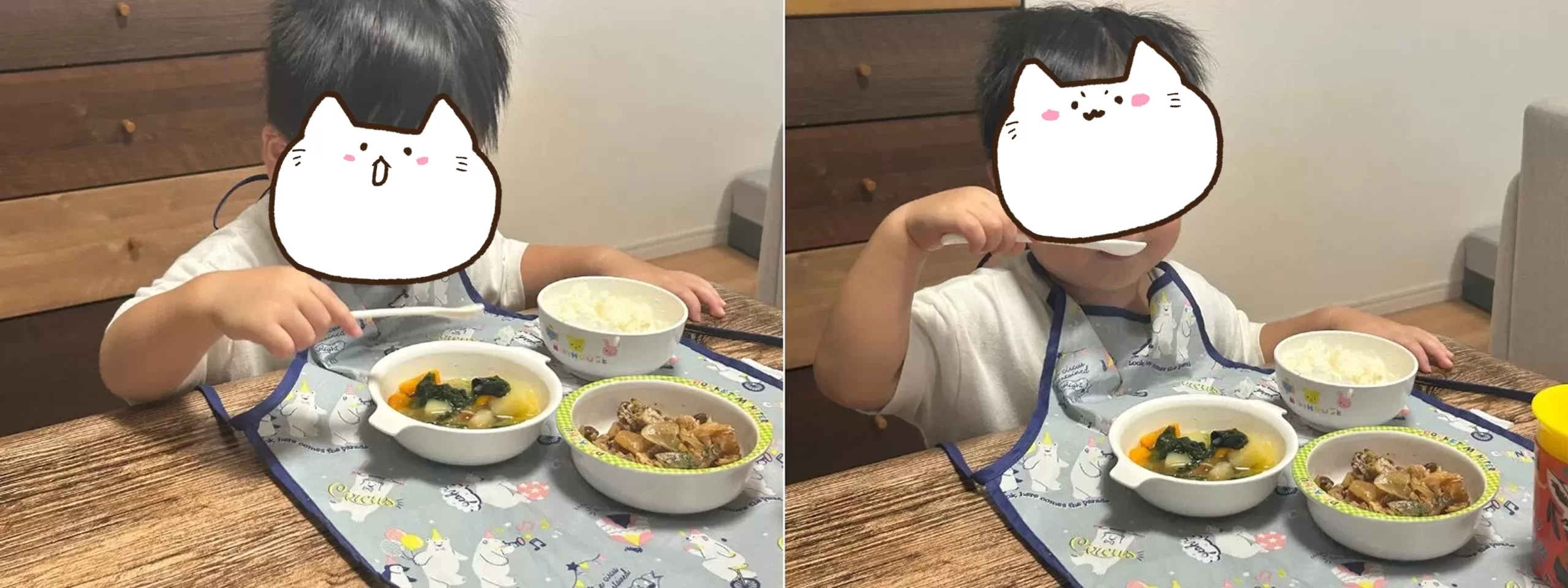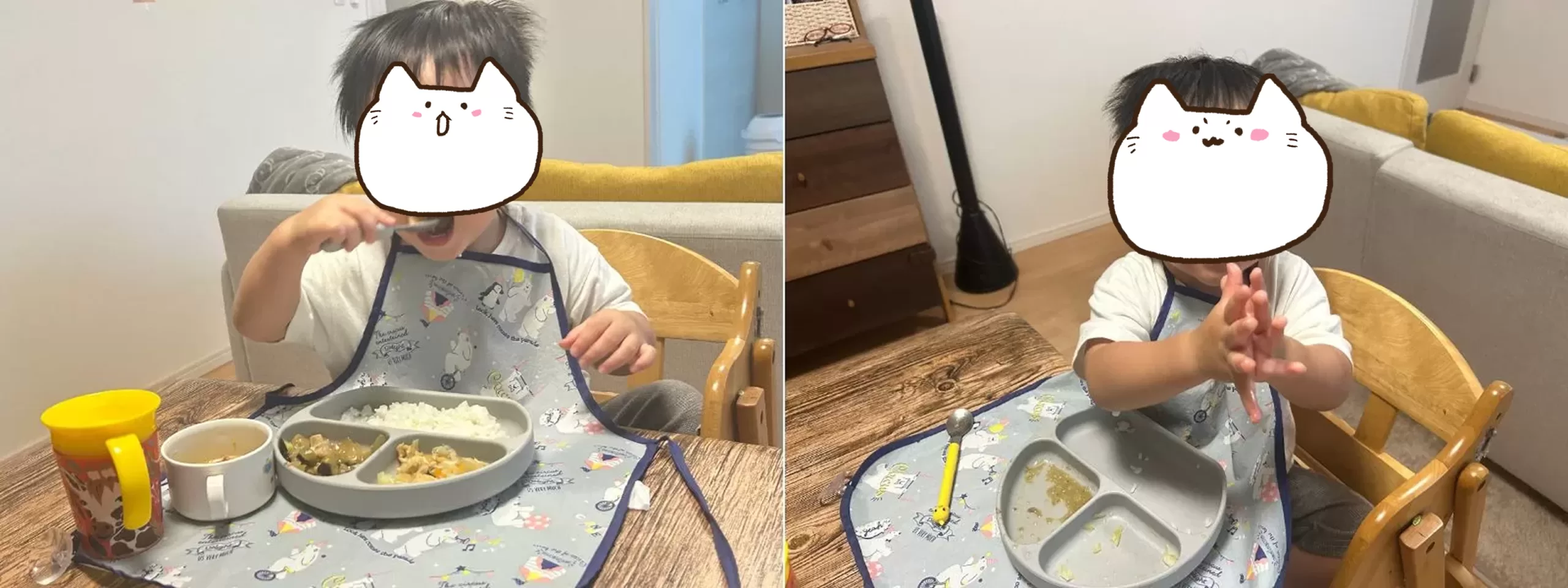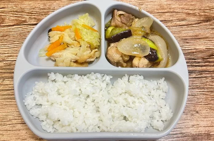 だんだんと食べ方に勢いが出てきて、おいしそうに食べ進めていきました。そして見事に完食!息子が苦手なナスやキャベツも全て食べられたことに驚きました。