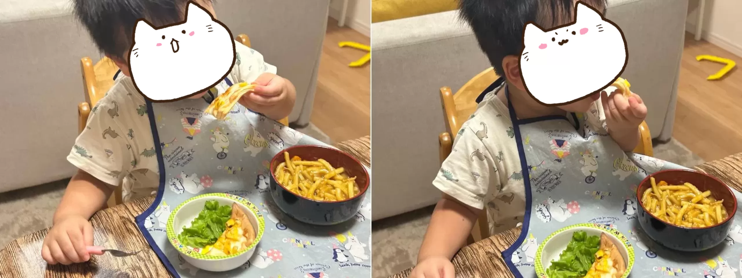 息子は生野菜が苦手なので、サラダはほぼ手を付けることなく残ってしまいました。いずれはサラダも食べてほしいので、少しずつ慣れてもらうしかないようです。