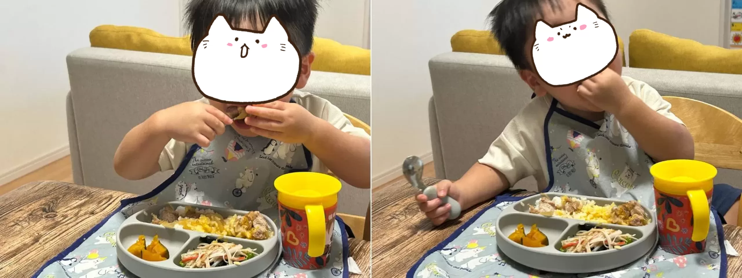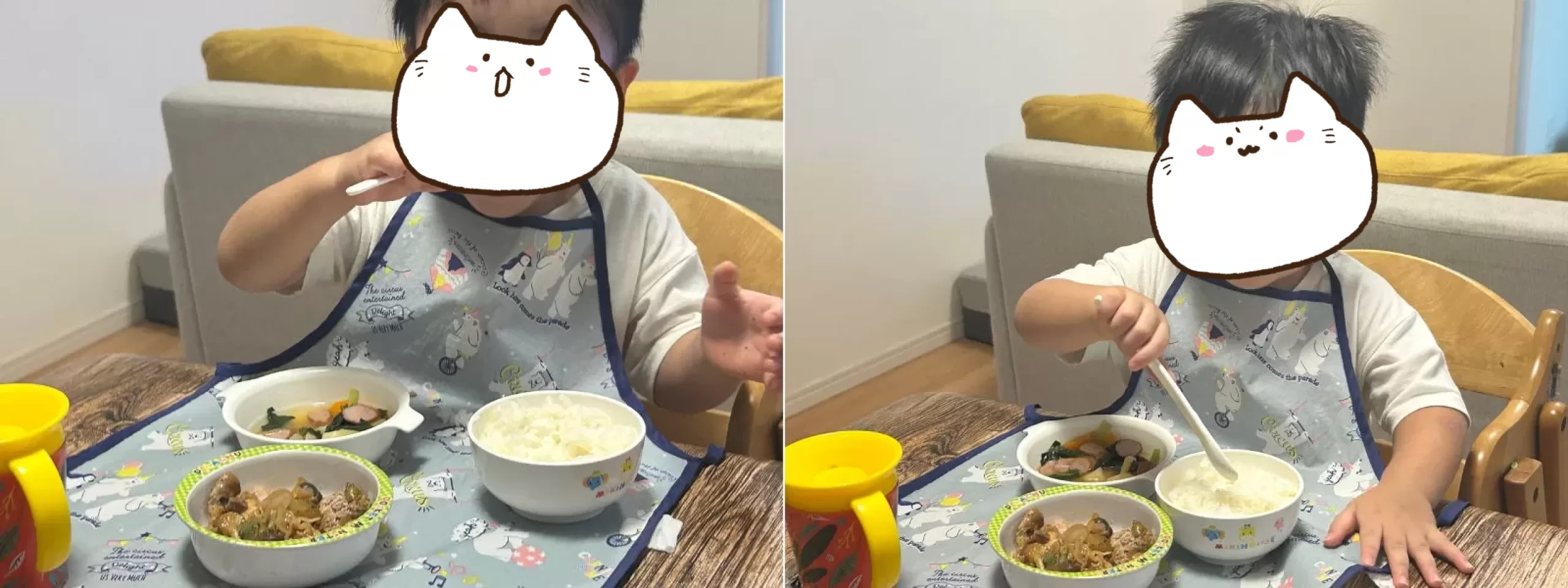 まずは大好きなご飯から食べちゃう息子