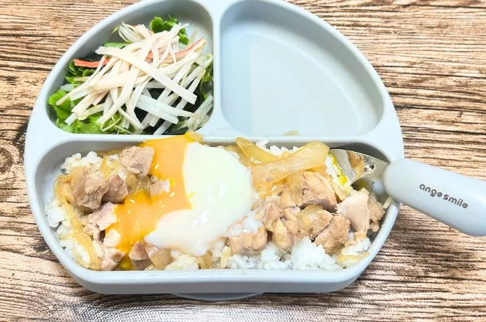 すき焼き風のあまからな味付けと、まろやかな卵のハーモニーが息子にヒット!大きな口を開けて、時には手で押し込みながらどんどん食べ進めていきました。私も味見してみたところ、大人でも満足できるしっかりした味付けでおいしかったです。