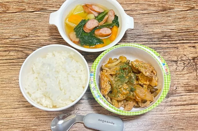 ポークBBQの方も、ご飯と一緒に食べてくれました。普段はきのこをあまり食べてくれませんが、ソースの味付けがおいしかったのか、いつもよりはスプーンが進みます。私も味見してみたのですが、少し酸味があってさっぱりと食べやすかったです。
