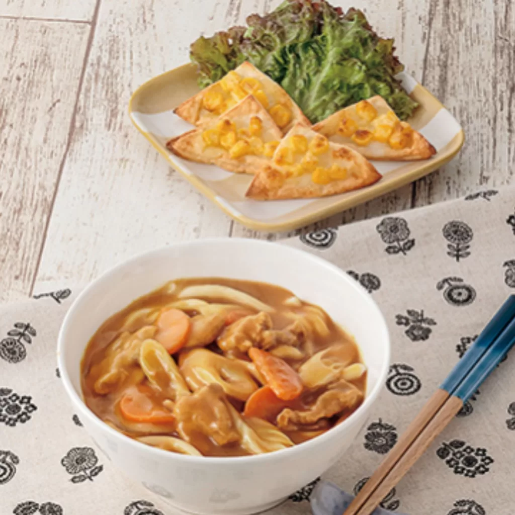 カレーライスもうどんも好きな息子。初めてのカレーうどんでしたが、抵抗なく最初から勢いよく食べ進めていきました。食べやすいように、麺を少し短くカットして提供しています。